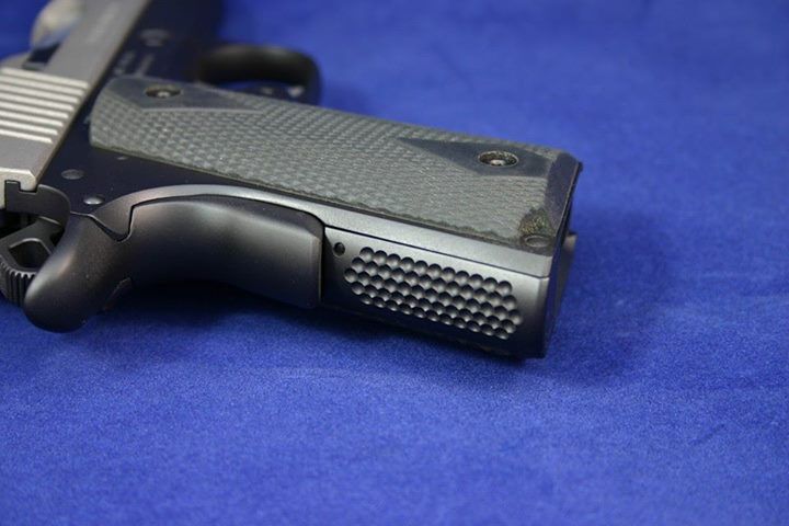 Close-up of fitted EGW grip safety and ED Brown thumb safety.