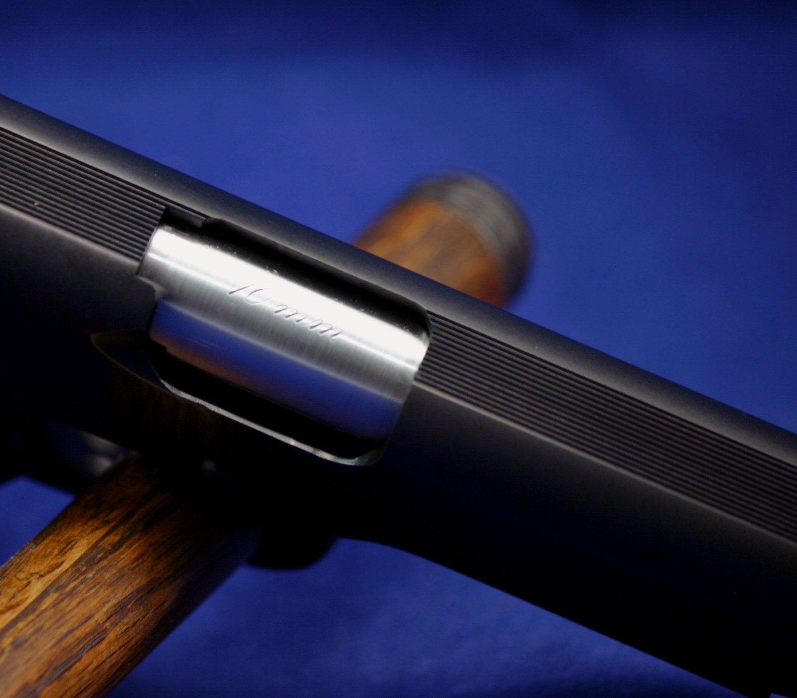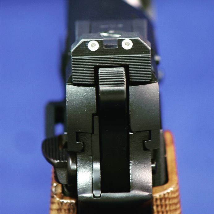 Close-up showing the custom fitted ejector and slide/ frame fit.
