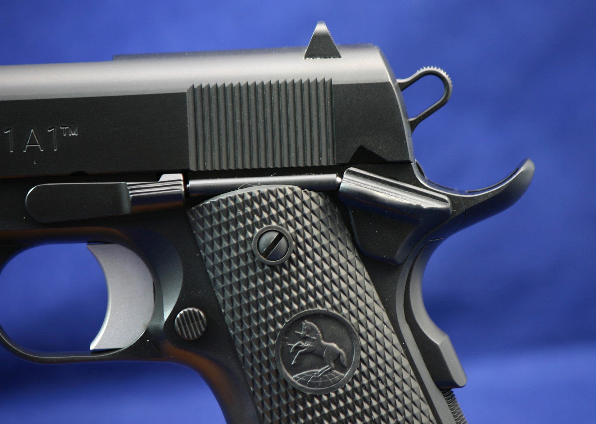 Grip ball texture on the mainspring housing.