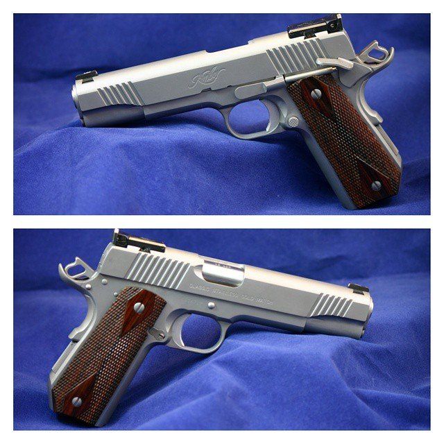 Custom Colt 1911 with French border, ball cut slide cleaned up contours. Finish is 400 polish and satin stainless.